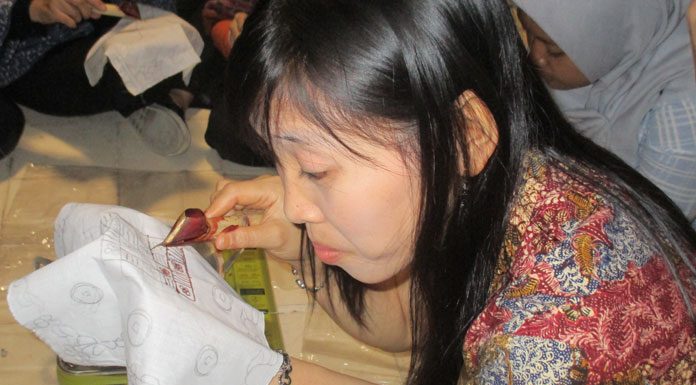 Aroma malam yang dipanaskan memenuhi ruangan lantai dua Gedung Kerta Niaga, Kawasan Kota Tua. Semua peserta hening dengan tangan memegang canting dan berusaha mengikuti pola yang ada pada secarik kain tanpa harus menumpahkan malam.